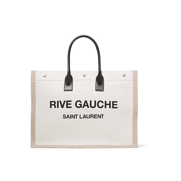 Saint Laurent 这款 “Shopper” 手提包尤为适合四处奔波或去市集购物时背携。单品裁自耐磨的帆布,并配有柔软的黑色皮革手柄,包身上与其呼应的同色调印花单词 “Rive Gauche”,则致敬了品牌 1960 年代的原创标志。包身内部空间充裕,并贴心配有带拉链口袋,助你稳妥收纳账单和*。