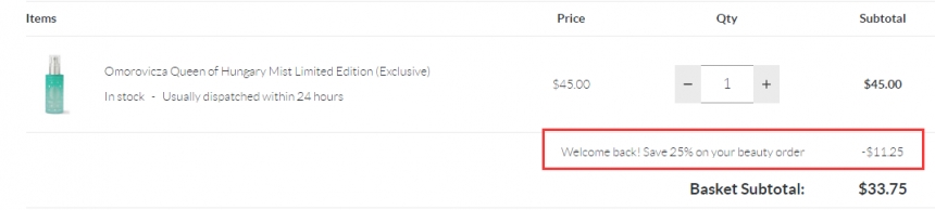 SkinStore 现有 OMOROVICZA 限量绿色款匈牙利皇后水 50ml,原价$45,现特价$33.75(约217元),需要使用优惠码:IMBACK ,优惠随时可能失效,满$49免美国境内运费。立即购买>>