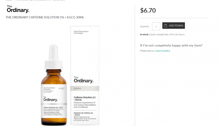 SkinStore 现有 补货!THE ORDINARY 5%*+EGCG眼部精华 30ml,现售价$6.7(约43元),优惠随时可能失效,满$49免美国境内运费。立即购买>>