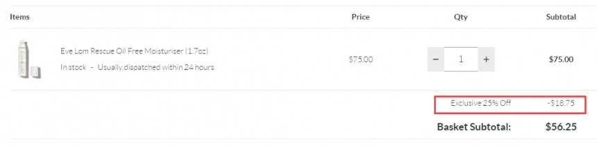SkinStore 现有 EVE LOM *清爽保湿乳液 50ml,原价$75,现特价$56.25(约359元),需要使用优惠码:SKIN25 ,满$49免美国境内运费,优惠随时可能失效,立即购买>>