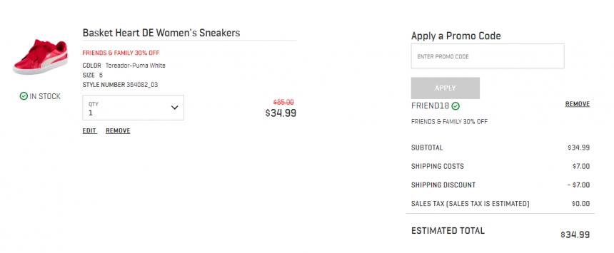 Puma US 现有 彪马 Basket Heart DE 女士运动鞋 热卖,原价$85,现特价$34.99(约232元),需使用折扣码:FRIEND18,有效期至北京时间 2018年06月12日15点,美国境内订单满$75免运费。立即购买>>