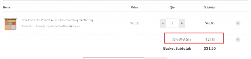 SkinStore 现有 Stila 热卖肤色校正 遮瑕盘,原价$45,现特价$31.5(约219元),需要使用优惠码:STL30 ,优惠随时可能失效,满$49免美国境内运费。立即购买>>