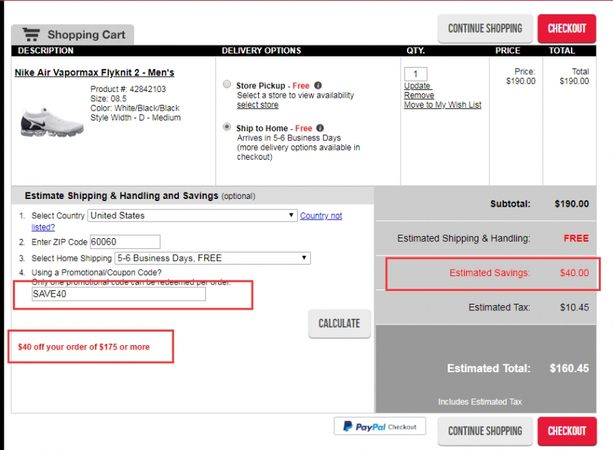 Foot Locker 现有 NIKE 耐克 AIR VAPORMAX FLYKNIT 2 男子跑鞋 热卖,原价$190,现特价$150(约959元),需要使用优惠码:S*E40 ,有效期至北京时间 2018年06月14日18点,美国境内订单满$75免运费,需使用折扣码:IPFL2R52 。立即购买>>