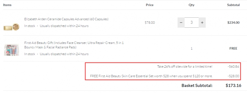 SkinStore 现有 Elizabeth Arden 雅顿 时光胶囊等经典护肤 全场7.4折+满$120送 FAB 护肤礼包,需要使用55专享优惠码:55X26 ,优惠随时可能失效,满$49免美国境内运费。立即购买>>