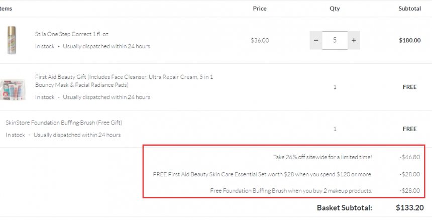 SkinStore 现有 Stila 液体眼影等热卖彩妆 全场7.4折+满$120送FAB 护肤礼包,需要使用55专享优惠码:55X26 ,优惠随时可能失效,满$49免美国境内运费,立即购买>>