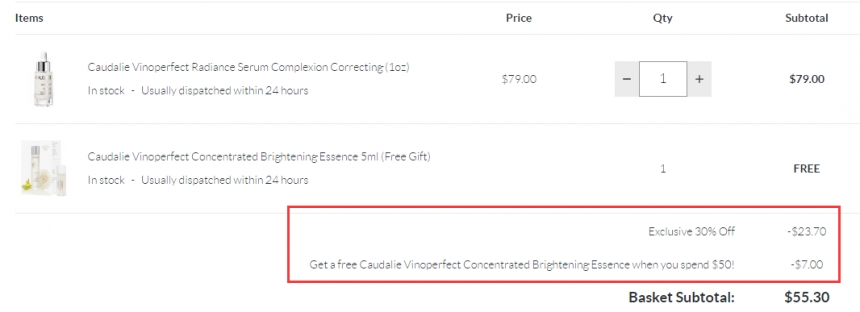 SkinStore 现有 CAUDALIE 欧缇丽 *淡*精华 30ml,原价$79,现特价$55.3(约379元),需要使用优惠码:SKIN30 ,优惠随时可能失效,满$49免美国境内运费。立即购买>>