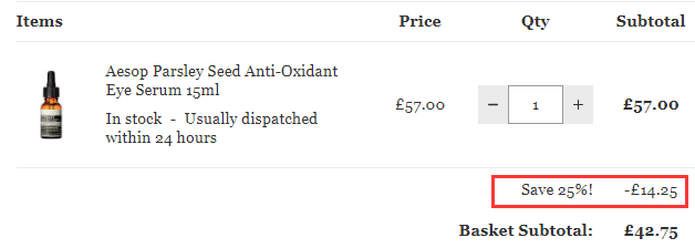Mankind 现有 Aesop 伊索 香芹籽抗氧化眼部精华 15ml,原价£57,现特价£42.75(约385元),需要使用优惠码:FLASH25 ,优惠随时可能失效,满£40免费直邮中国。立即购买>>