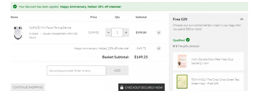 SkinStore 现有 精选 NUFACE、filorga、ELEMIS 等美妆护肤 无门槛7.5折 优惠活动,需要使用55专享优惠码:HAITAO25 ,有效期至北京时间 2018年10月24日12点,满$49免美国境内运费。立即购买>>