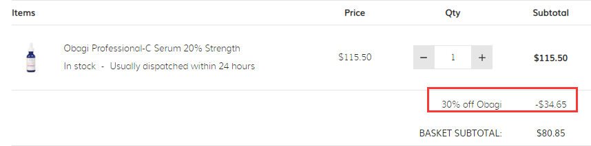 SkinCareRx 现有 OBAGI 维C精华液等 *学功能性护肤产品 无门槛7折,需要使用优惠码:OB30 ,优惠随时可能失效,满$49免美国境内运费。立即购买>>