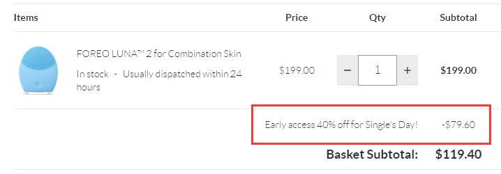 SkinStore 现有 FOREO LUNA 2 防水硅胶洗脸仪 蓝色款,原价$199,现特价$119.4(约826元),需要使用优惠码:EARLY40 ,优惠随时可能失效,满$49免美国境内运费。立即购买>>