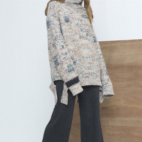 *HEE 高领宽松落肩开叉混色毛衣
